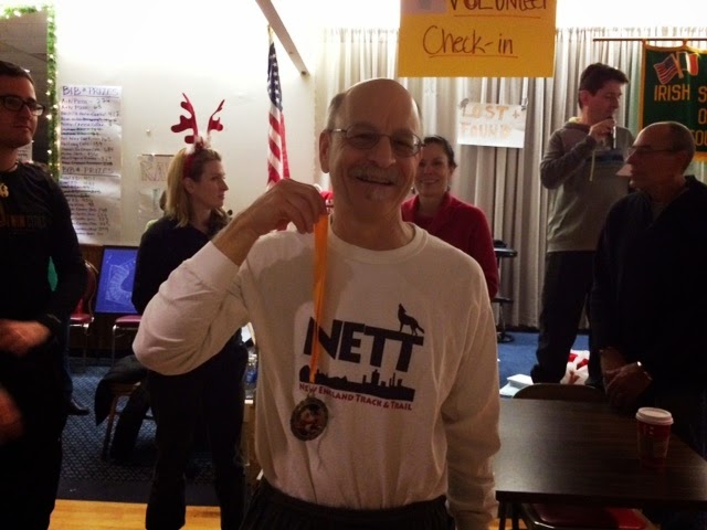 As always, the Parkway Running Club put on a fantastic, family-friendly event. The new venue (the West Roxbury Irish American Club) was a great place for pre- and post-race activities. There were literally dozens of volunteers (including Doris) out on the course to direct the runners and piles of raffle prizes.